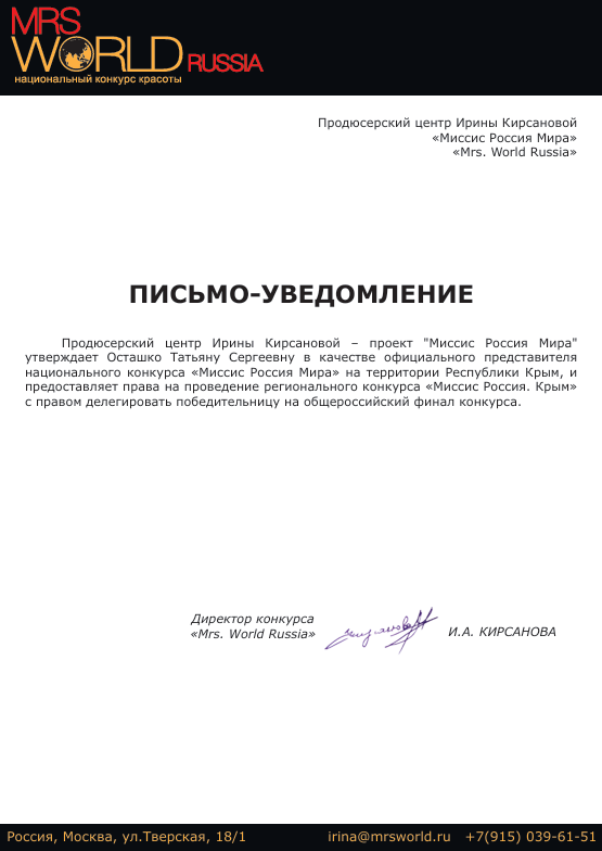 Мы приглашаем СМИ стать частью этого значимого события и осветить конкурс Mrs. World Russia.